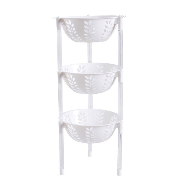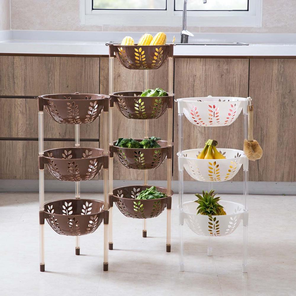 3/4 Tiers Stackable Kitchen Fruit Vegetable Storage Rack Shelf Basket Organizer Plastic Hollow Floor Storage Shelf